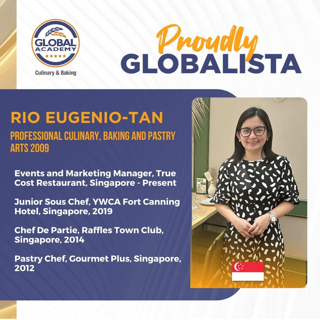 Alumna Rio displays her well-rounded, world-class education and disciplines from Global Academy, proudly putting to practice all that she has acquired from studies to Culinary experience.